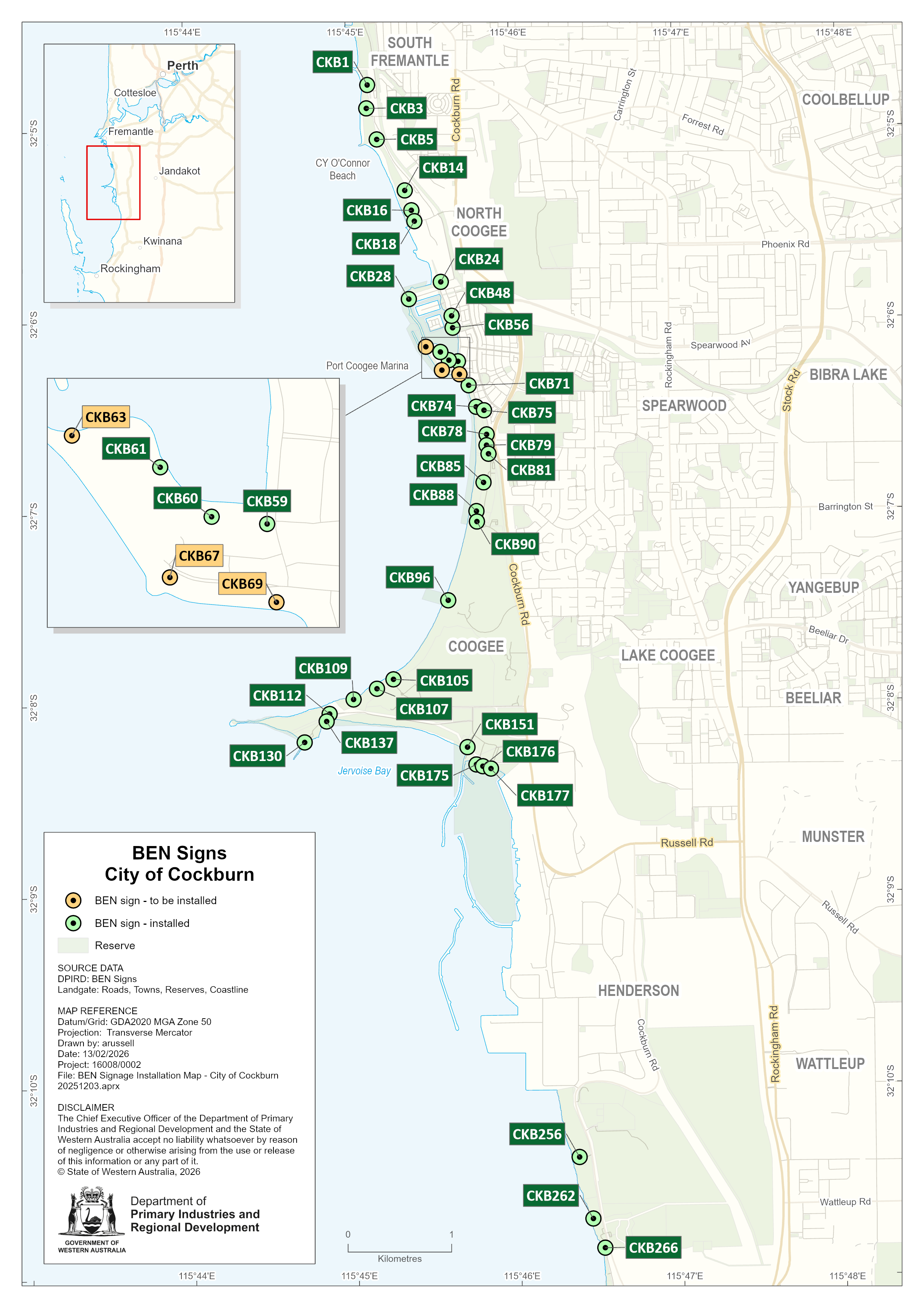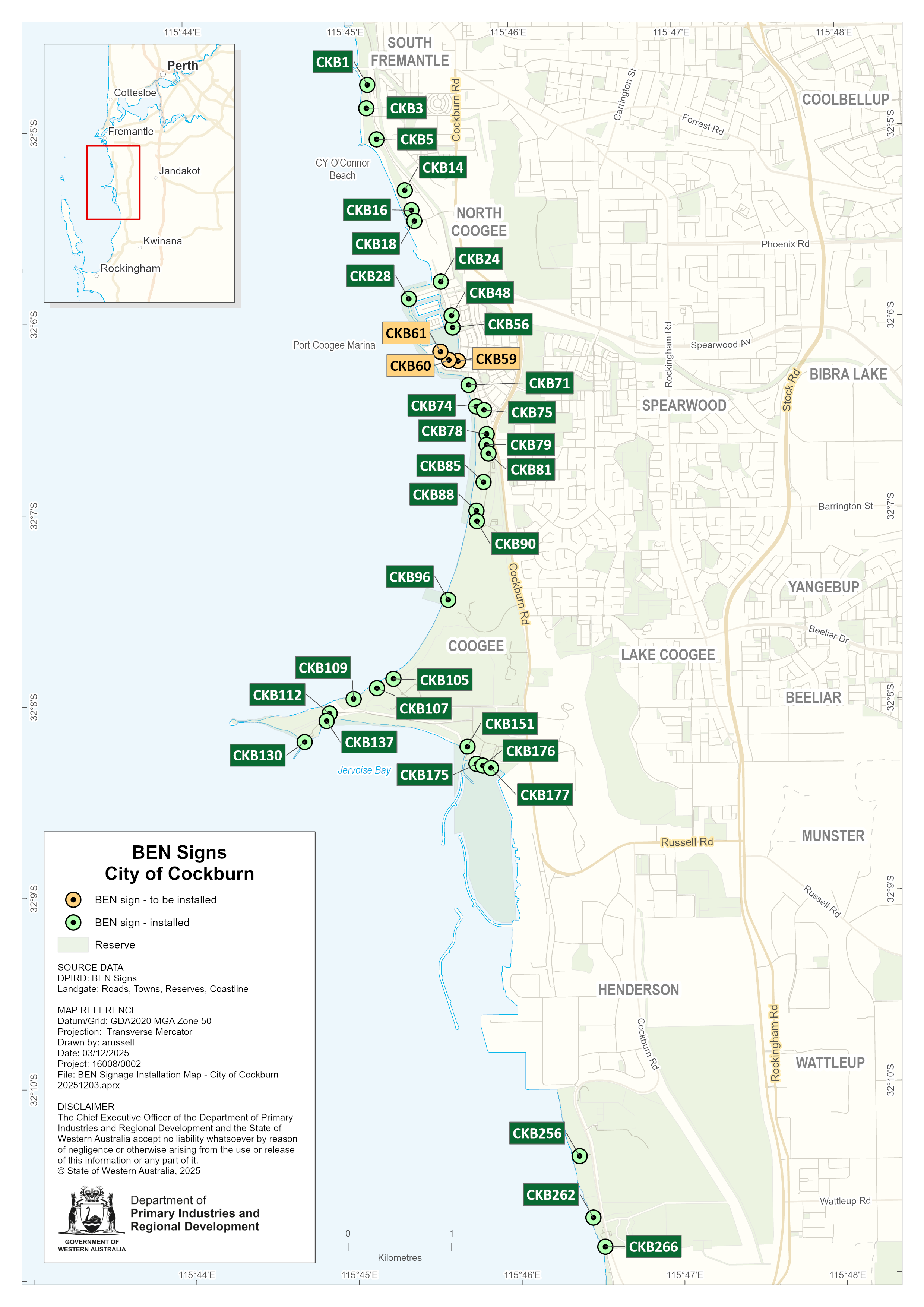 The map below displays BEN sign locations within the City of Cockburn.