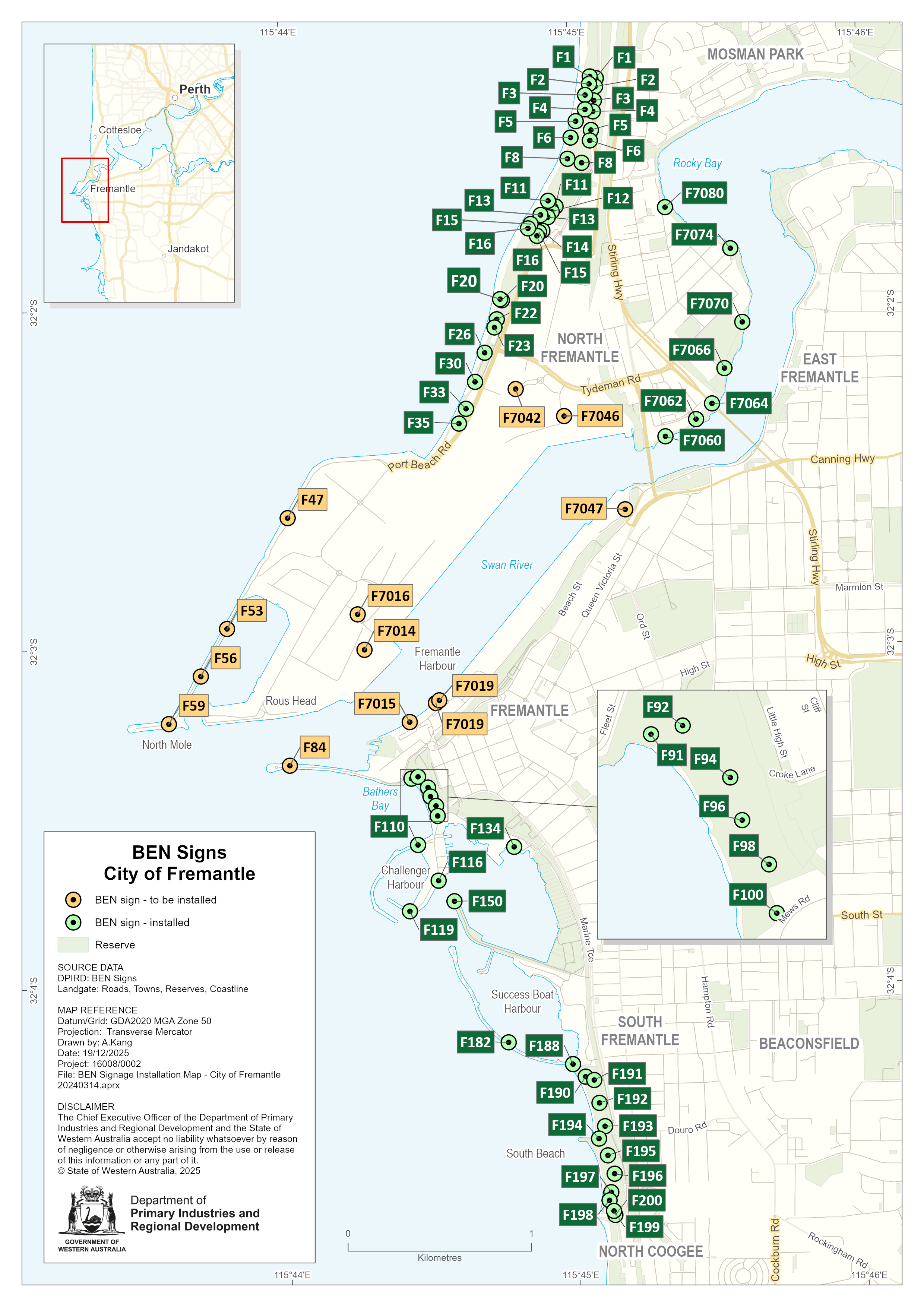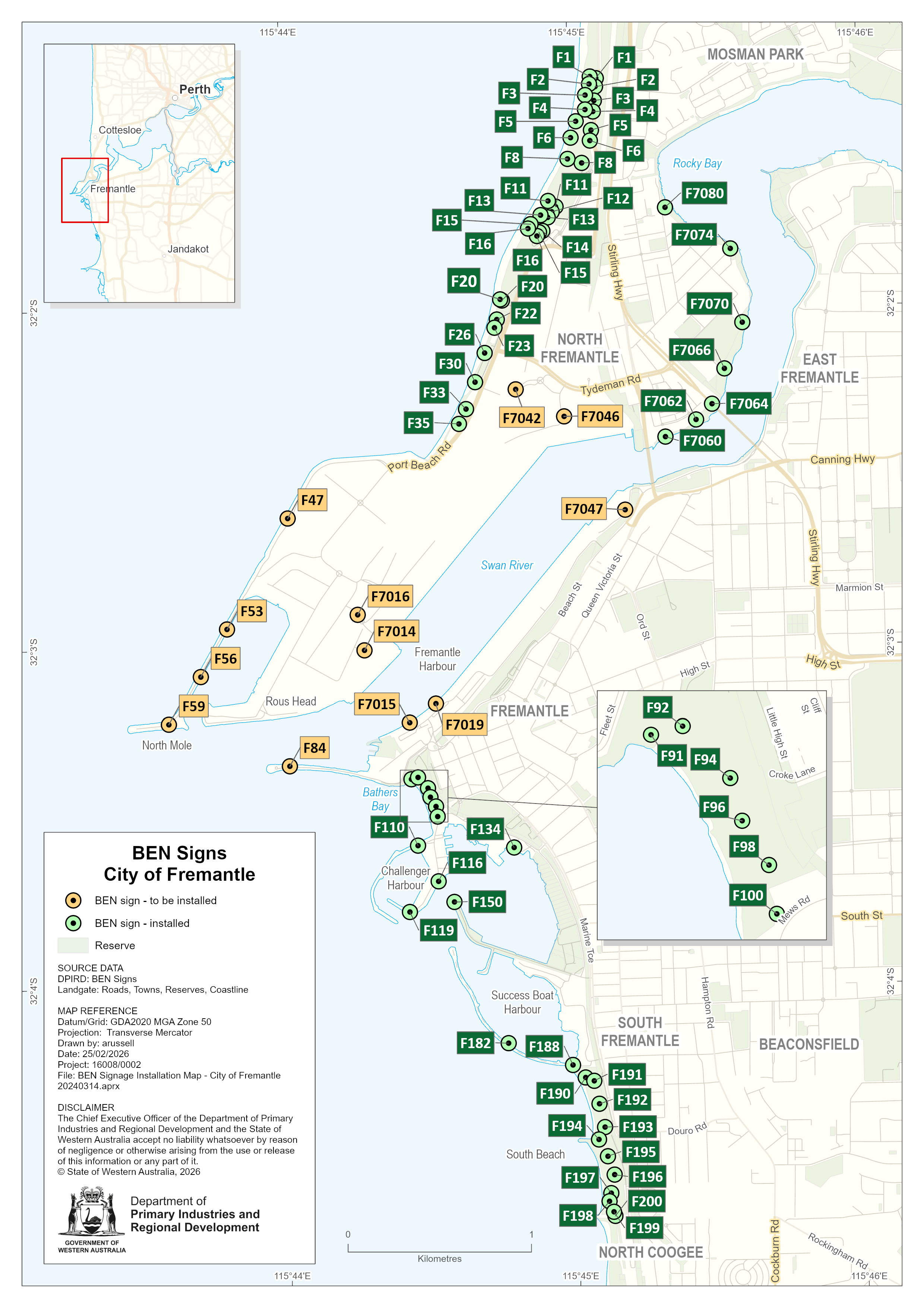 The map below displays BEN sign locations within the City of Fremantle.