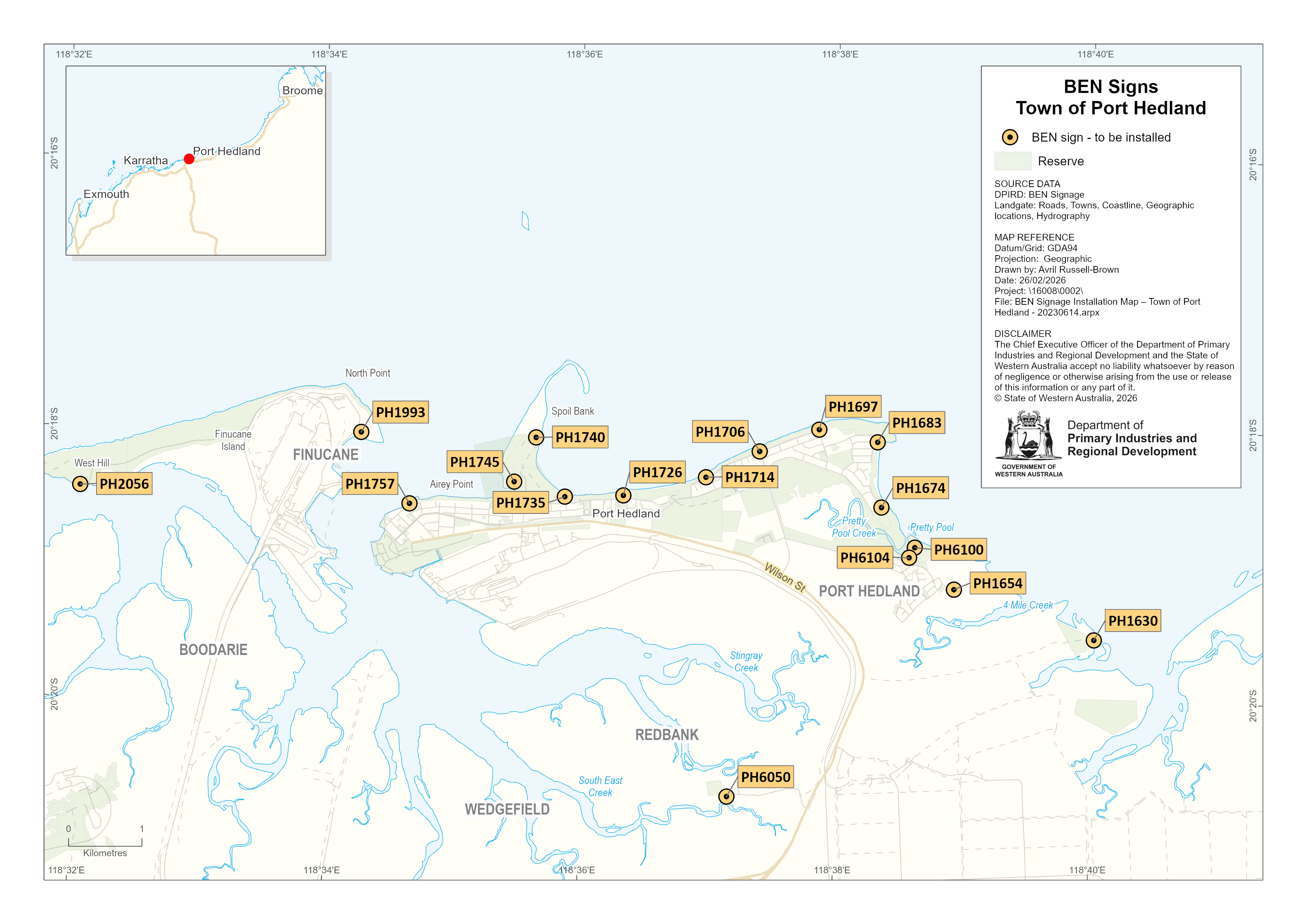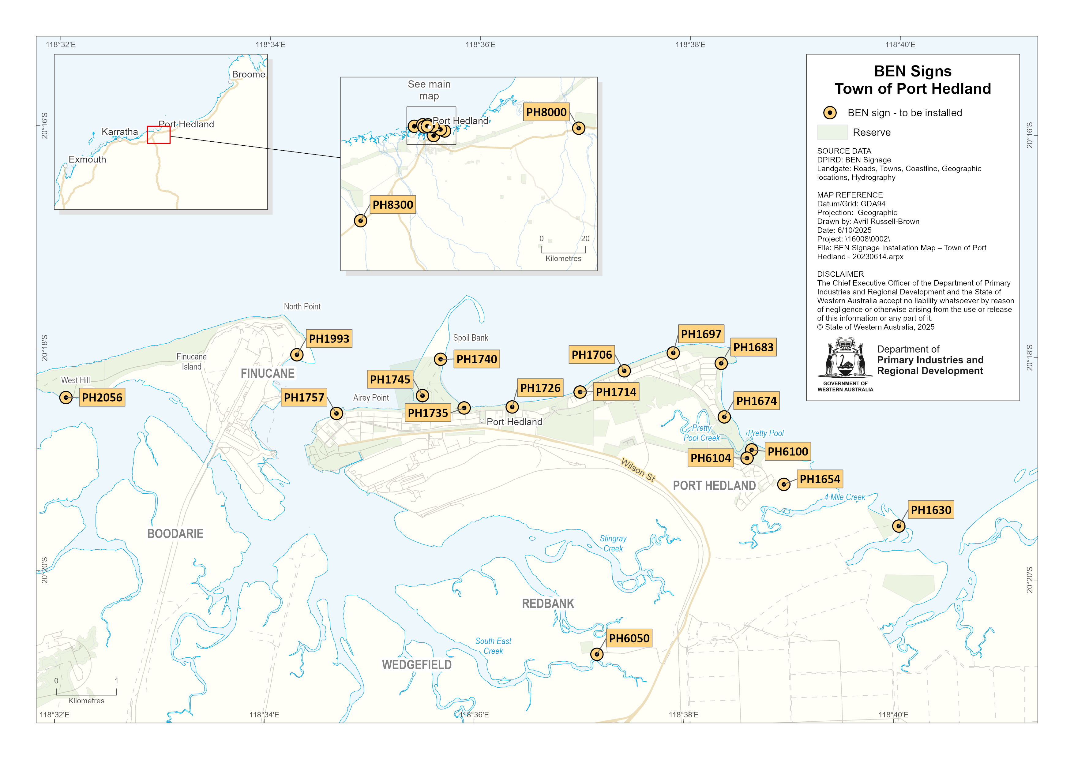 The map below displays BEN sign locations within the Town of Port Hedland.